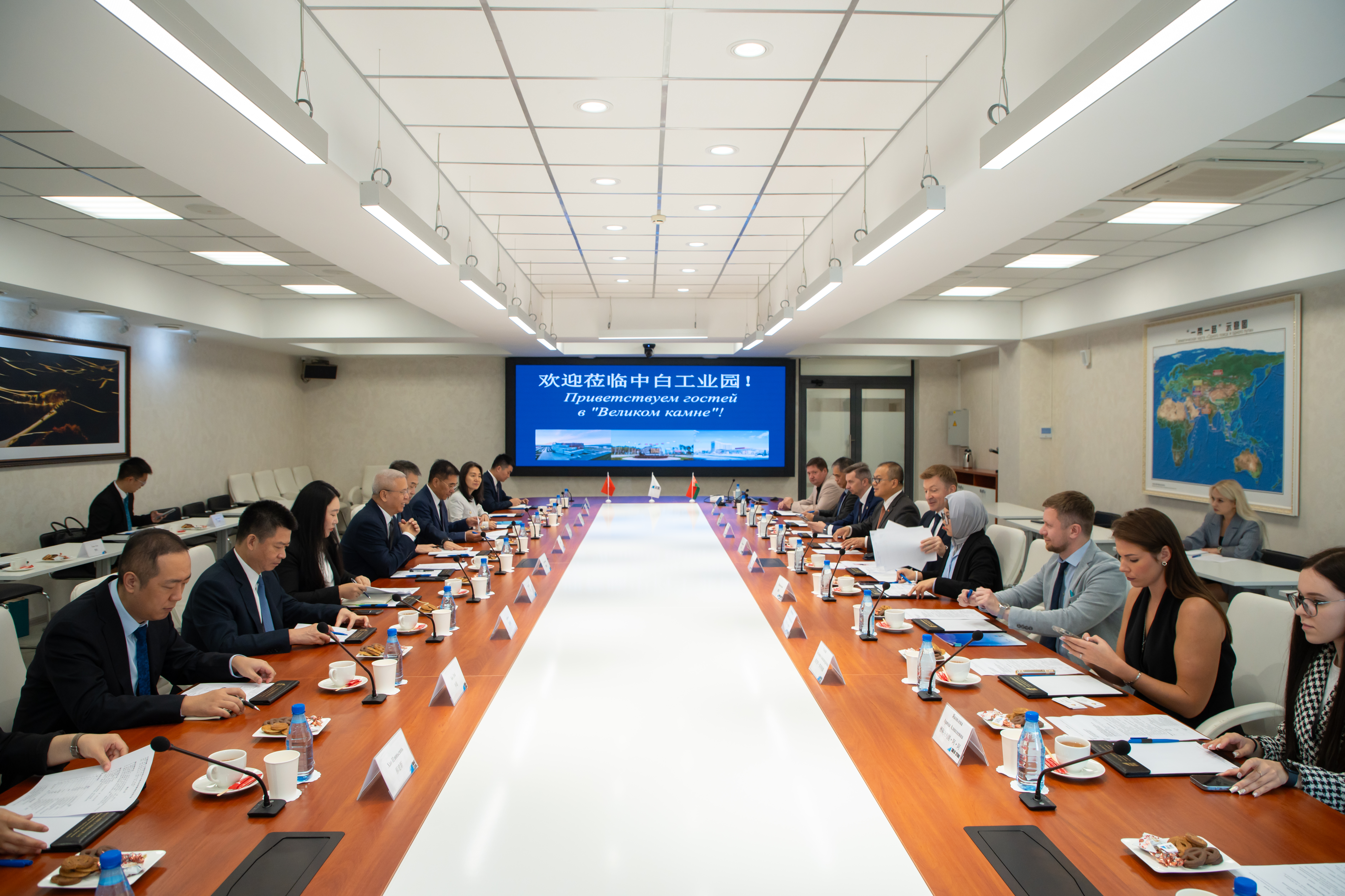 會見中白工業園管委會第一副主任列別江采夫時,黎曉煜與列別江采夫共同聽取中白工業園區開發股份有限公司工作匯報。他對園區建設運營取得的成效給予肯定,并指出國機集團高度重視園區建設運營工作,愿與園區管委會、開發公司攜手為推動園區2025-2030戰略落地創造有利條件,共同打造“一帶一路”高質量發展的示范項目。