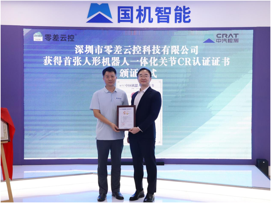 9月26日,國機智能下屬企業中汽檢測技術有限公司(簡稱“中汽檢測”)成功舉辦人形機器人一體化關節CR認證證書頒發儀式,發出行業首張該類產品認證證書。